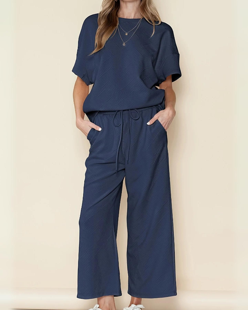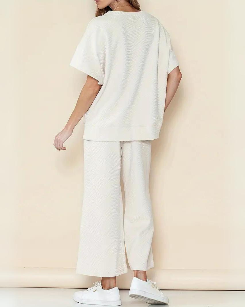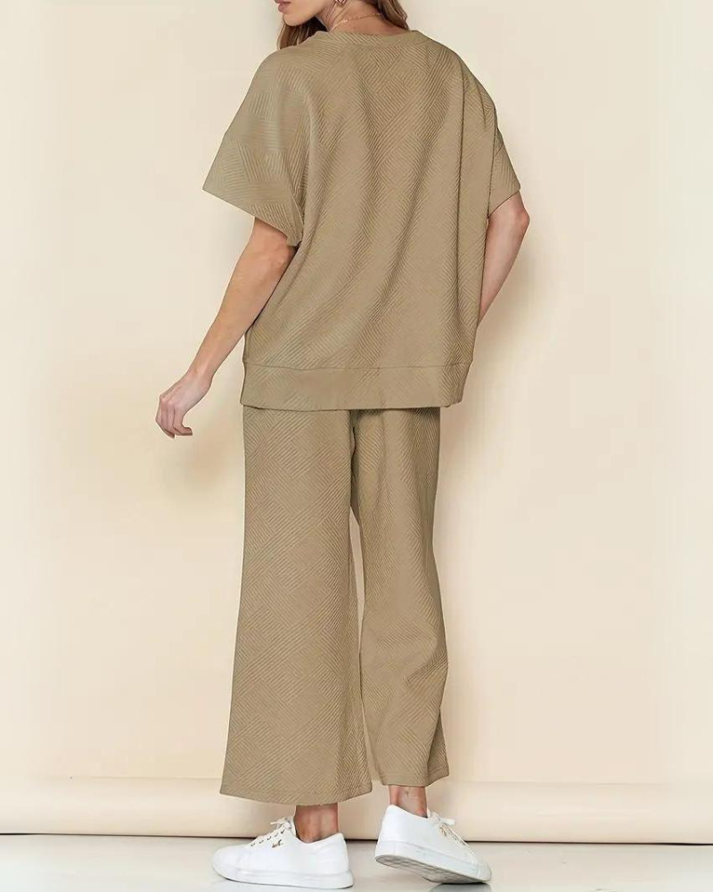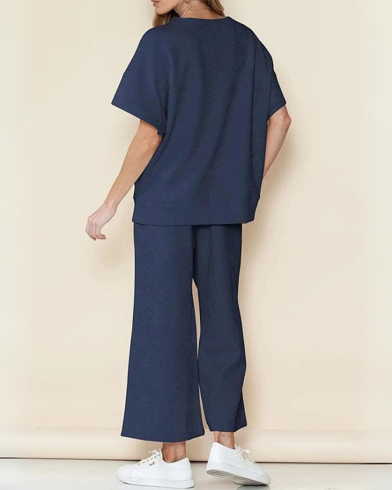 Gönnen Sie sich ultimativen Komfort mit dem MIDAS Textured Luxury Lounge Set , entworfen für moderne Frauen, die eine Mischung aus Stil und Leichtigkeit lieben. Hergestellt aus atmungsaktivem Strukturstoff bietet dieses Set eine schmeichelhafte, lockere Passform , die sich wunderbar an alle Körpertypen schmiegt – perfekt zum Entspannen, für das Homeoffice oder für entspannten Luxus. Die dezente Textur und das minimalistische Design verleihen ihm den High-End-Touch, den Sie lieben werden.